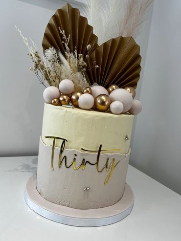 Each cake is beautifully finished with your choice of rich chocolate ganache or smooth Swiss meringue buttercream.
